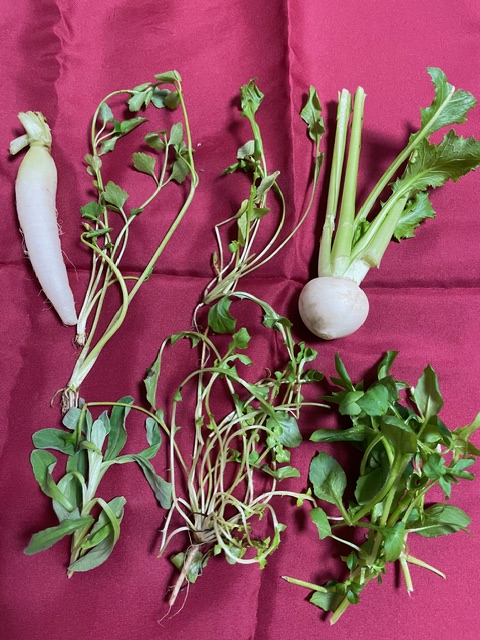 「無病息災」、「長寿健康」を願い、青菜が不足しがちな時期に、栄養を摂る為でもあります。
